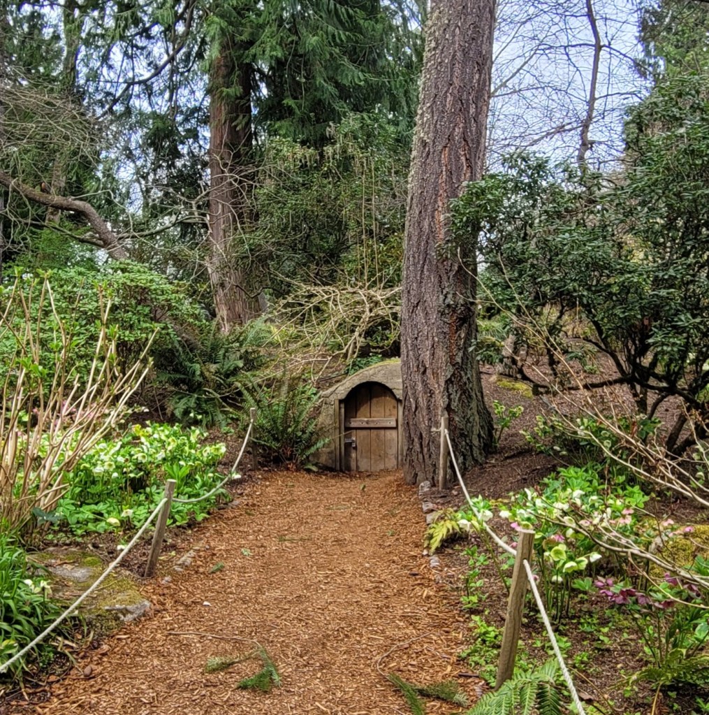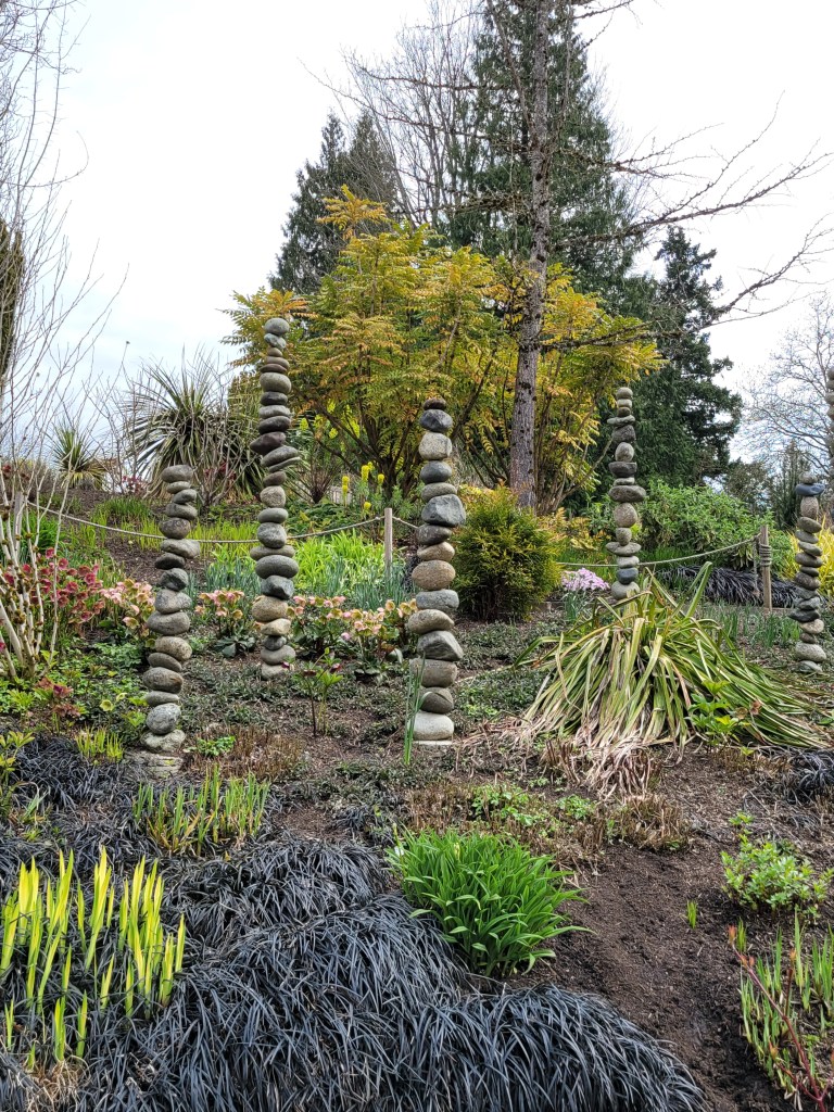 The gardens are attached to Kelsey Creek Park through a pathway on the East side of the gardens. I didn’t venture far into the park but I came across a few interesting spots such as this adorable fairy door at the bottom of this tree and gigantic rock cairns.