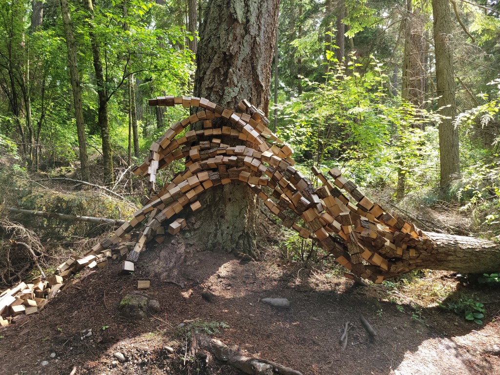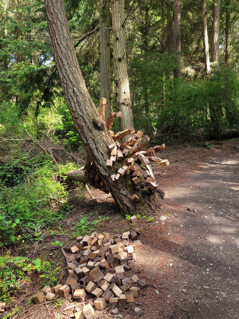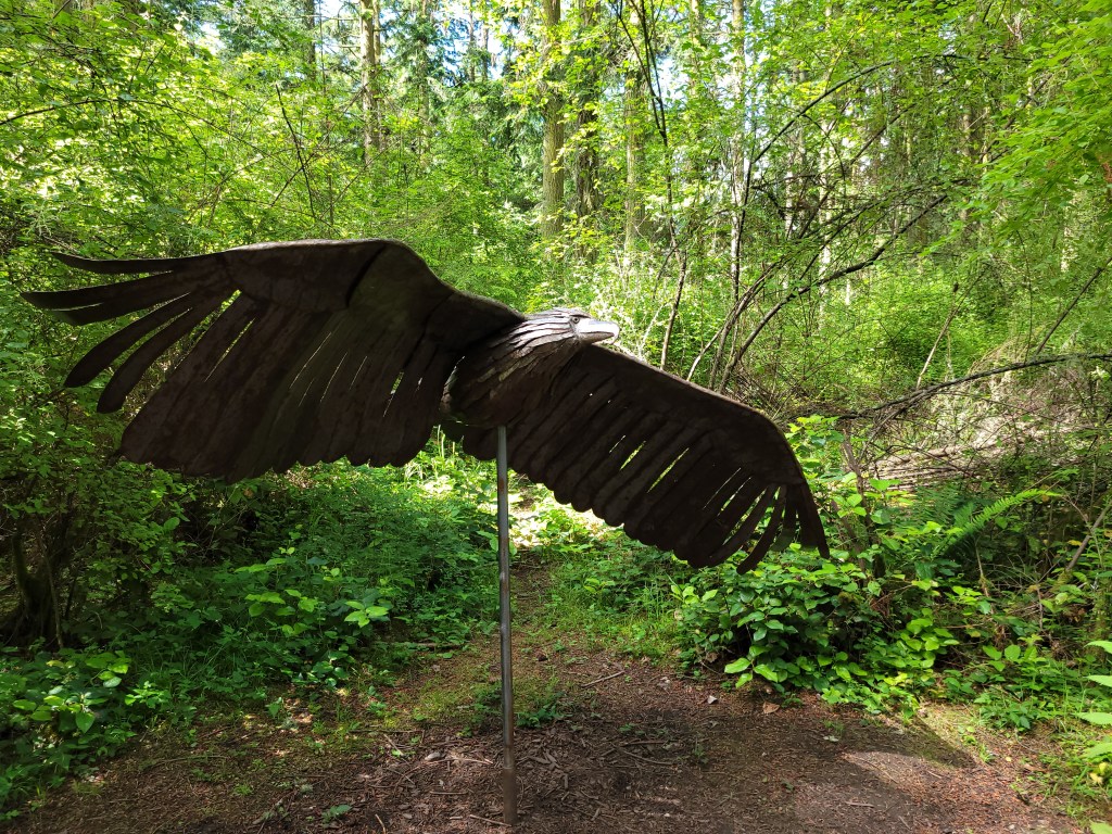 Price Sculpture Forest– What a cool place to walk through! There are a variety of art pieces scattered through the forest along a well maintained dirt path. It was very intriguing to look for art pieces throughout the trees, sometimes even an adventure to see the posted sign listing the artist information, not immediately see the art piece, look around and notice that above your head, or further into the forest there was a sculpture. This is a must see if you are going to visit Whidbey. My favorite spot to stop was this hand made from wooden blocks that wrapped around the tree.