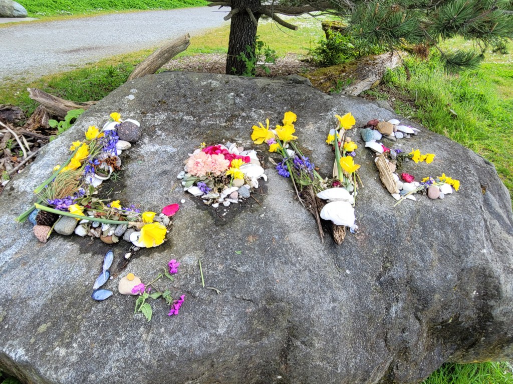 The LOVE picture at the top created with a collection of flowers, shells and rocks is a great example of the artistic pieces that you can find throughout this region. In parks, alley’s, buildings… there are seemingly random art creations to enjoy. Sometimes it sparks a bit of creative muse, other times I stop and enjoy the piece, recognizing the creative minds that are all around me. Sometimes when I take a walk around on the forested pathways, I can find little gnome figurines, small wooden animals or unexpected public library boxes filled with nature books for kids.